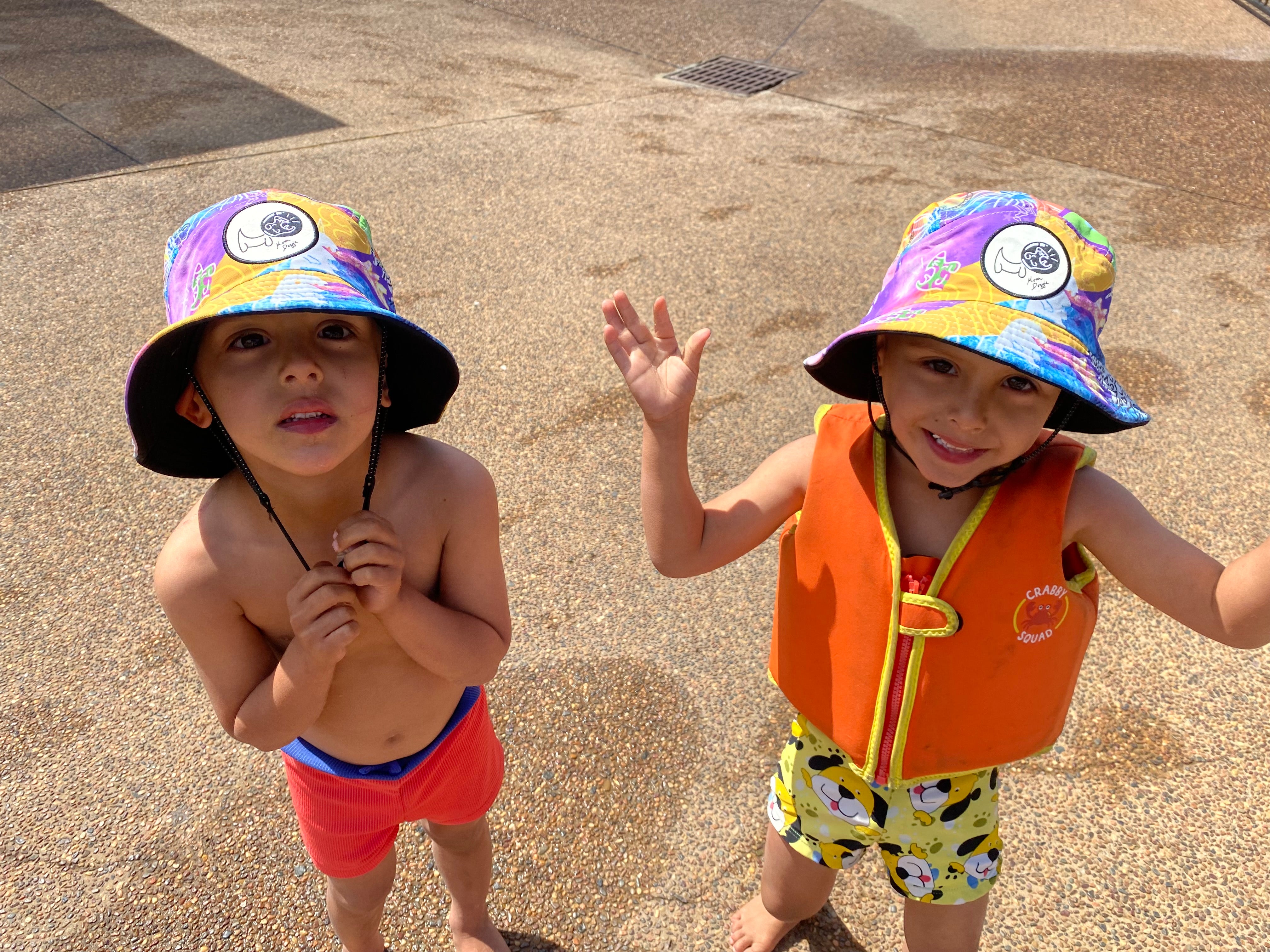 The Puppy Hat is suitable for 3-6 year olds*. It was designed with kids at the beach in mind. It will stay on their little noggins while frolicking in the water, rumbling in the sand and at the playground, as well as in windy conditions. We have chosen a vibrant, water visible colourway to make sure they are easy to spot at crowded beaches and also under water.